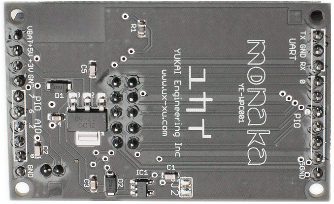 konashi2.0と同様、I2C master、SPI masterの機能が使えます PIOのピン数、PWMを出せるピン数はPIO0~7の8本とkonashi1の頃に戻りました PWM波形の仕様変更(ハードPWMからソフトPWMになり精度は低下、最小単位50us、周期とDutyの上限は2^32[us]) 電流出力DAC(アナログ出力)に対応(AIO0,1のうち同時には1本のみ出力可能) BLEのService,CharacteristicのUUIDはOTA Service(下記)以外konashi2.0のまま OTAファームウェアアップデートに対応(プロトコルはkonashi2.0と異なり、 [Silicon Labs OTA Service] になります。) |