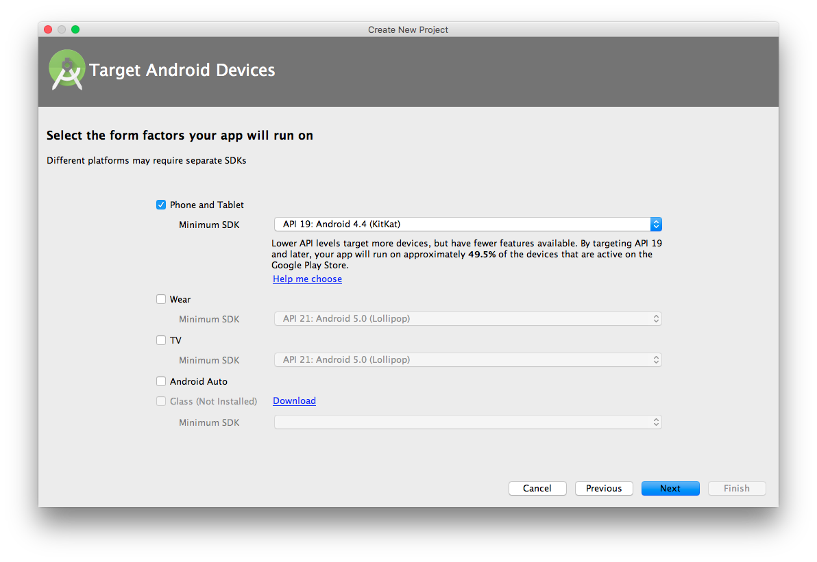 Minimum SDKは、以下の通りとしてください。