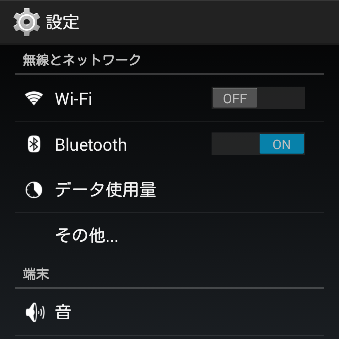 konashi は通信するために Bluetooth 4.0 (Bluetooth Low Energy) を使用します。ですので、アプリを実行する前にAndroidデバイスのBluetooth機能を有効にします。(すでに有効になっている方はこの項目をスキップしてください)