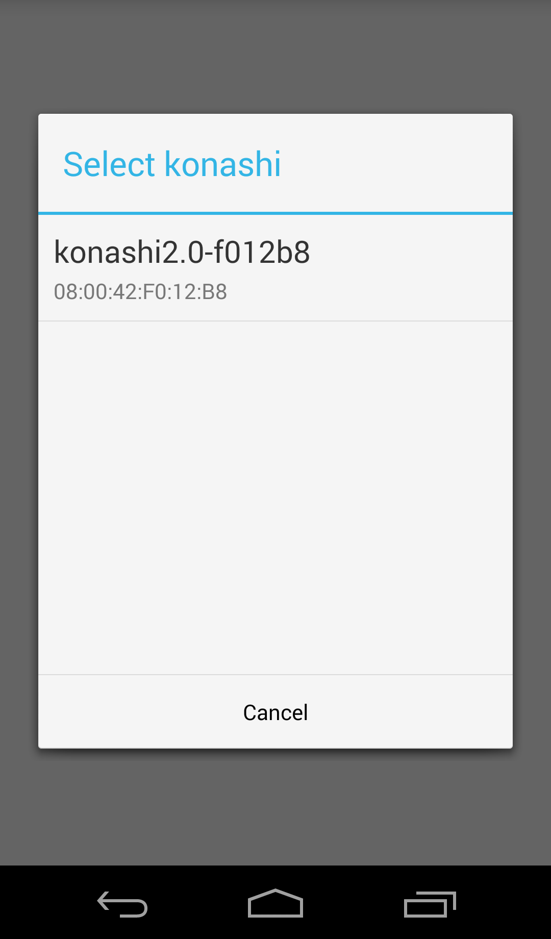 すると接続できるkonashiのリストが表示されるので、接続するkonashiを選択してください。