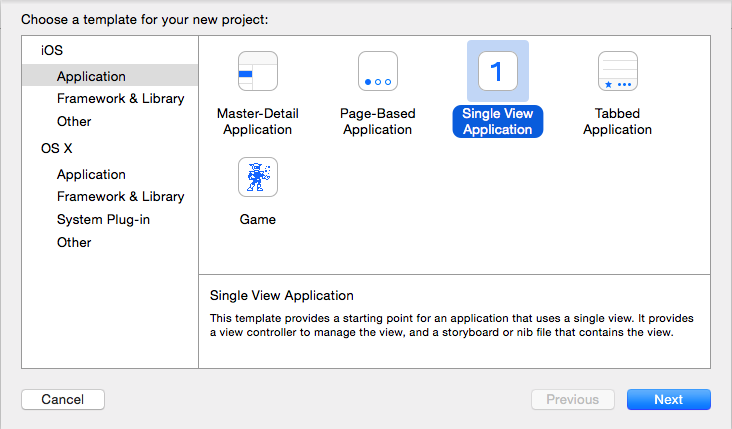 Single View Application のプロジェクトを作成します。