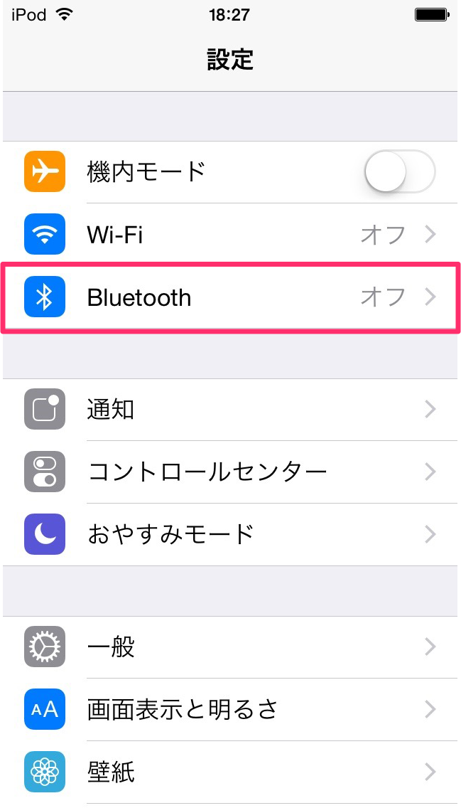 iOSデバイスの「設定」を開き、表示されたリストの中の「Bluetooth」を選択します。